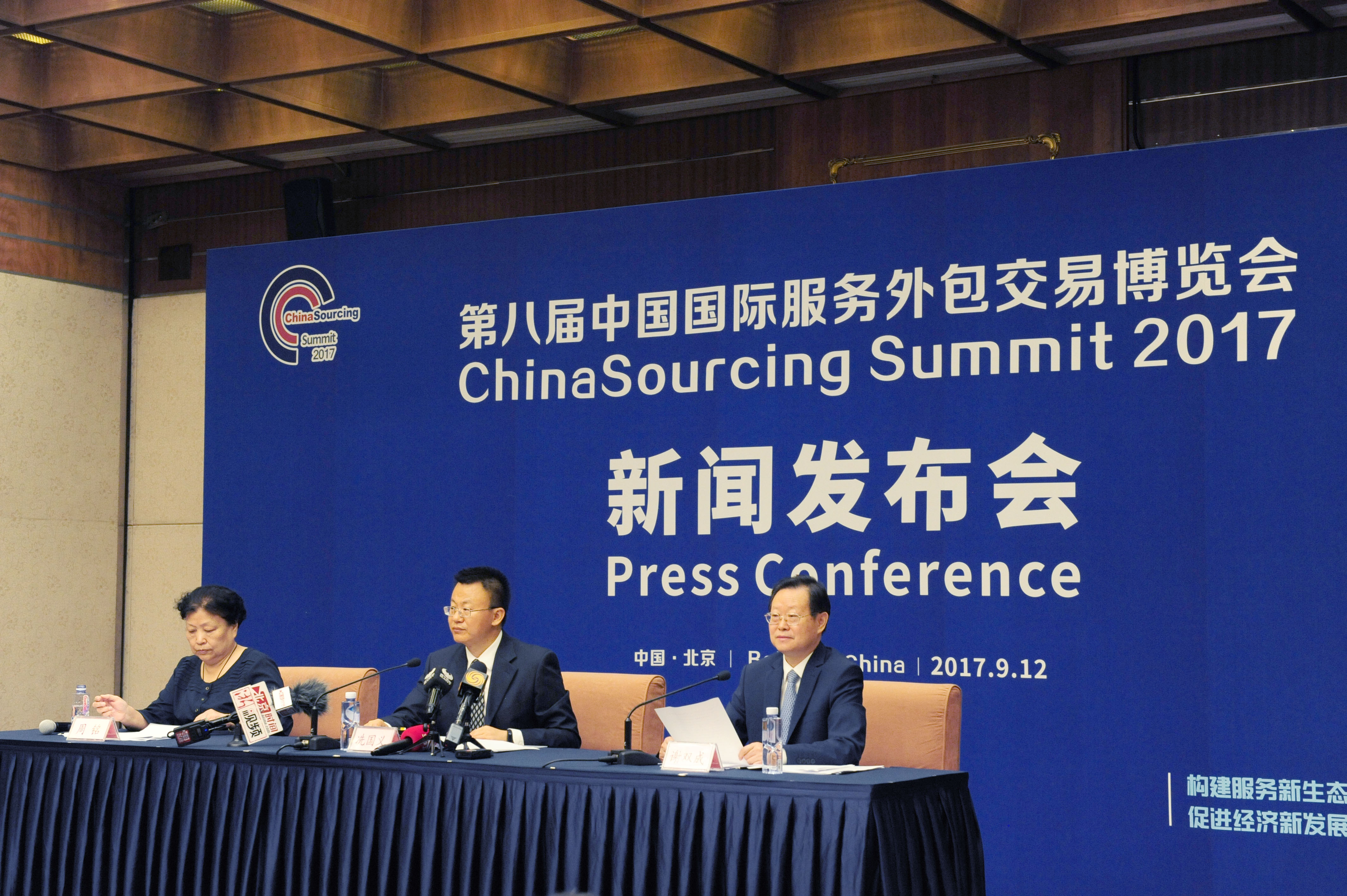 2017年9月12日上午,商务部与杭州市人民政府在京共同主办第八届中国国际服务外包交易博览会新闻发布会。商务部服贸司司长冼国义、杭州市人民政府副市长谢双成出席并发布大会有关情况,发布会由中国国际投资促进会常务副会长周铭主持。